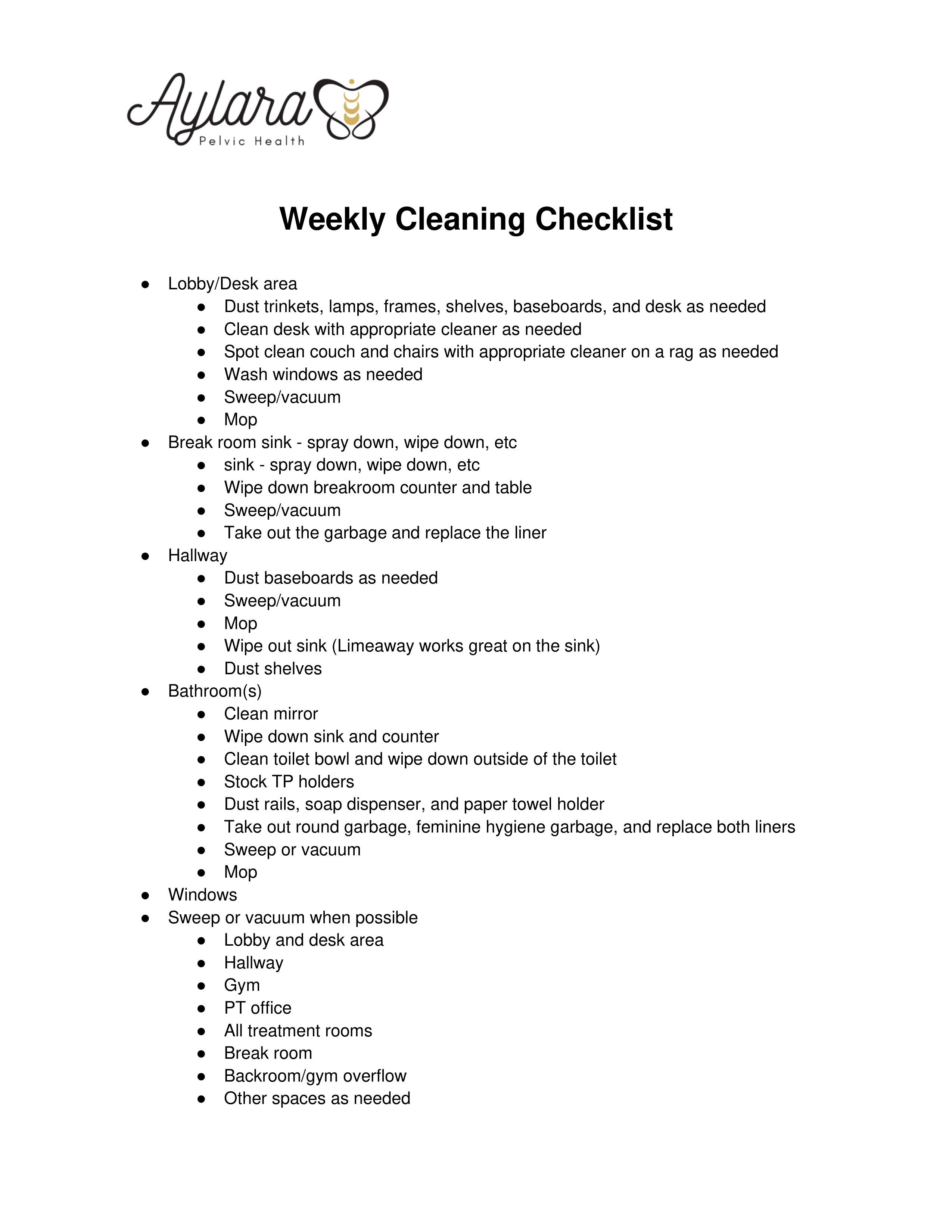 Weekly Cleaning Checklist